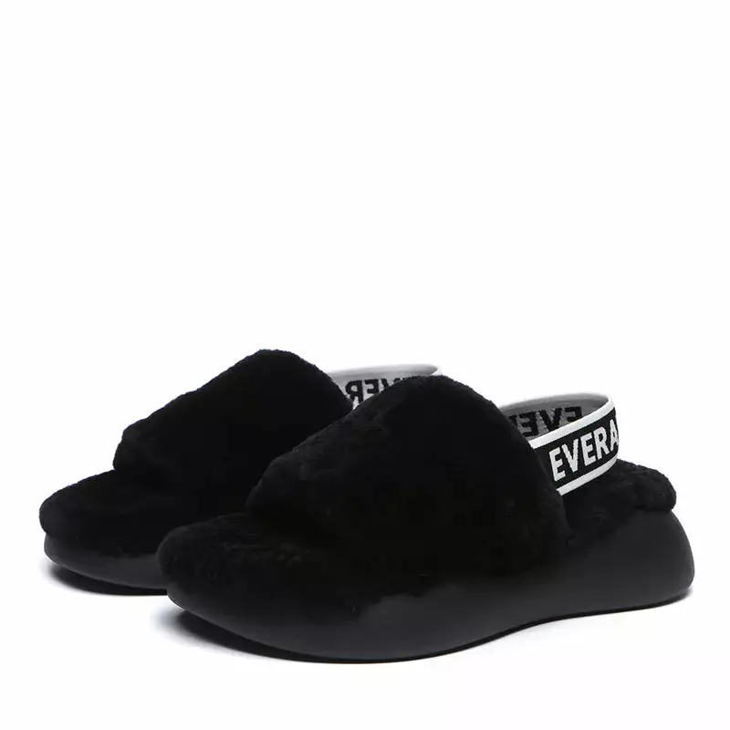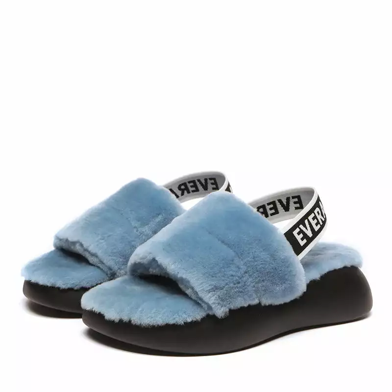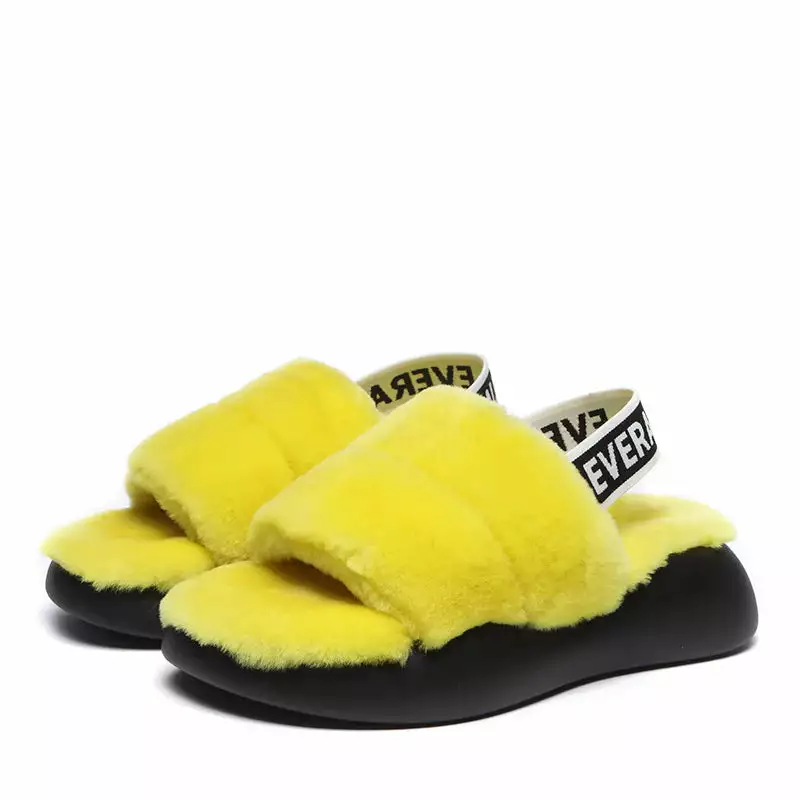 Our favorite style of the season, the Club Fluffy Slides is as good as it sounds, combining slipper and sandal into a cozy statement shoe. Featuring soft sheepskin with a lightweight platform to keep things airy, this standout slide pairs perfectly with midi dresses or your favorite jeans. Take your look to a new level of fluffiness and height with our Club Fluffy Slides. With a durable non-slip, shock-absorbing platform sole and soft woollen design, you will be the envy of all when you step out in these statement slides.