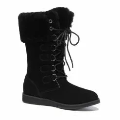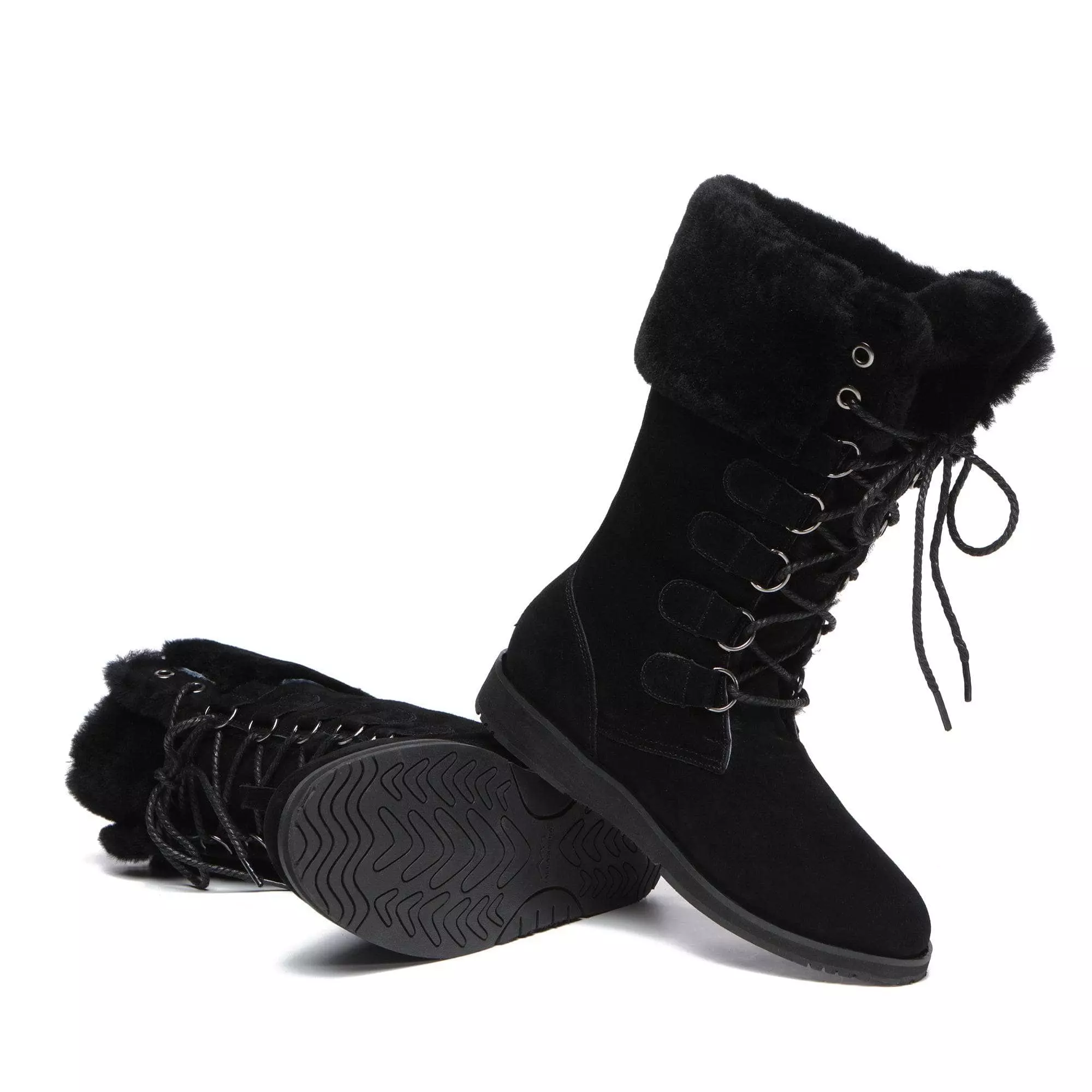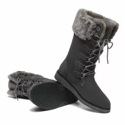 The Ellena Lace Up Sheepskin Boots is a mid calf size were designed for greater durability on our existing lace up design. The winter boots have a slip-resistant EVA rubber outsole that provides additional cushioning and prolonged durability, combining both advantages of sports shoes and fashion sheepskin boots. The snow boots have lace-up designs and are easy to put on and take off