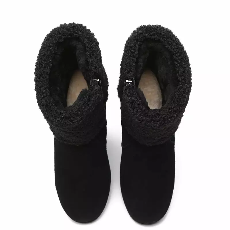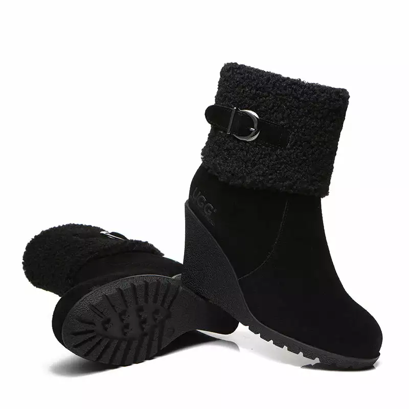- A high-quality outdoor cushion sole with curly sheepskin wool plus woven wool makes the boots comfortable wedge ever.