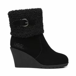 UGG Stephy Fashion Boots combine the best of footwear – style, and practicality. The upper is pre-treated with a layer of nano-tech coating that repels liquids and stains which is ideal for maintaining suede material. To elevate the shoe an extra curly woollen collar decorated with single buckle straps adds both luxe and warmth to your ankle.