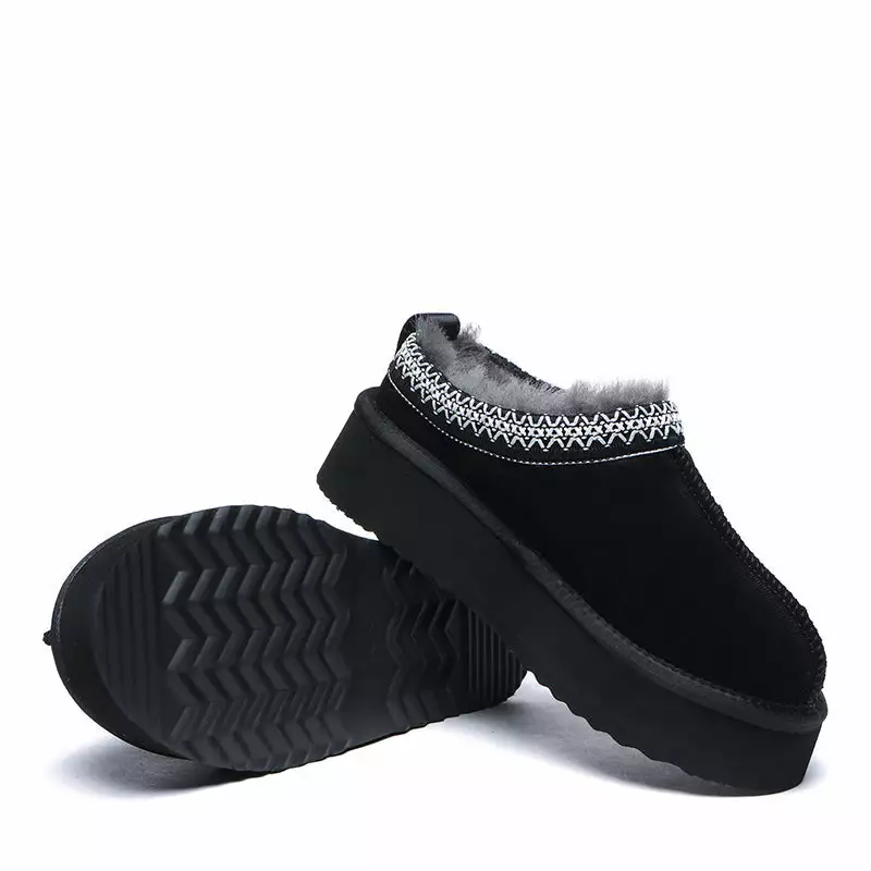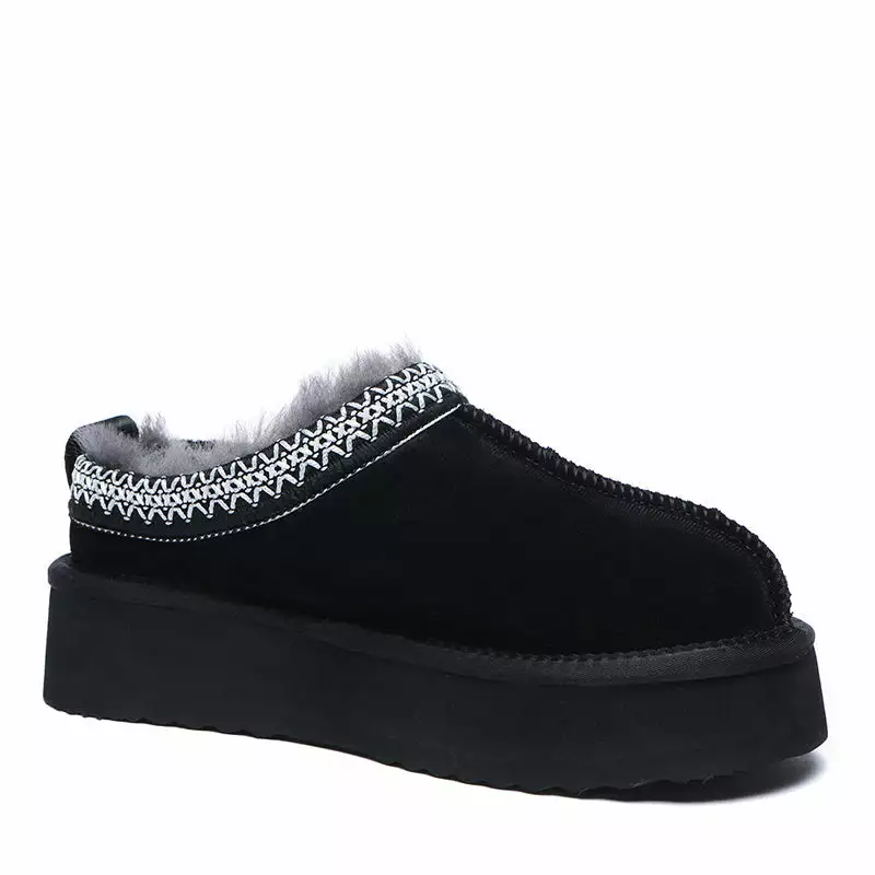 The upper is crafted with top-of-the-line suede, meaning you can wear them even on your most delicate floors without fear of scuffs or scratches. Enjoy a cushiony interior thanks to the plush sheepskin wool lining and insole. Each pair of slippers is secured with EVA rubber cushioning making each step light, silky smooth and comfortable. Plus, their fashionable yet convenient platform design makes them suitable for a variety of occasions.Â
