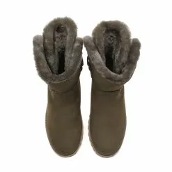- Fashion sheepskin boots with fluffy design on top to keep you in ultra-warmth