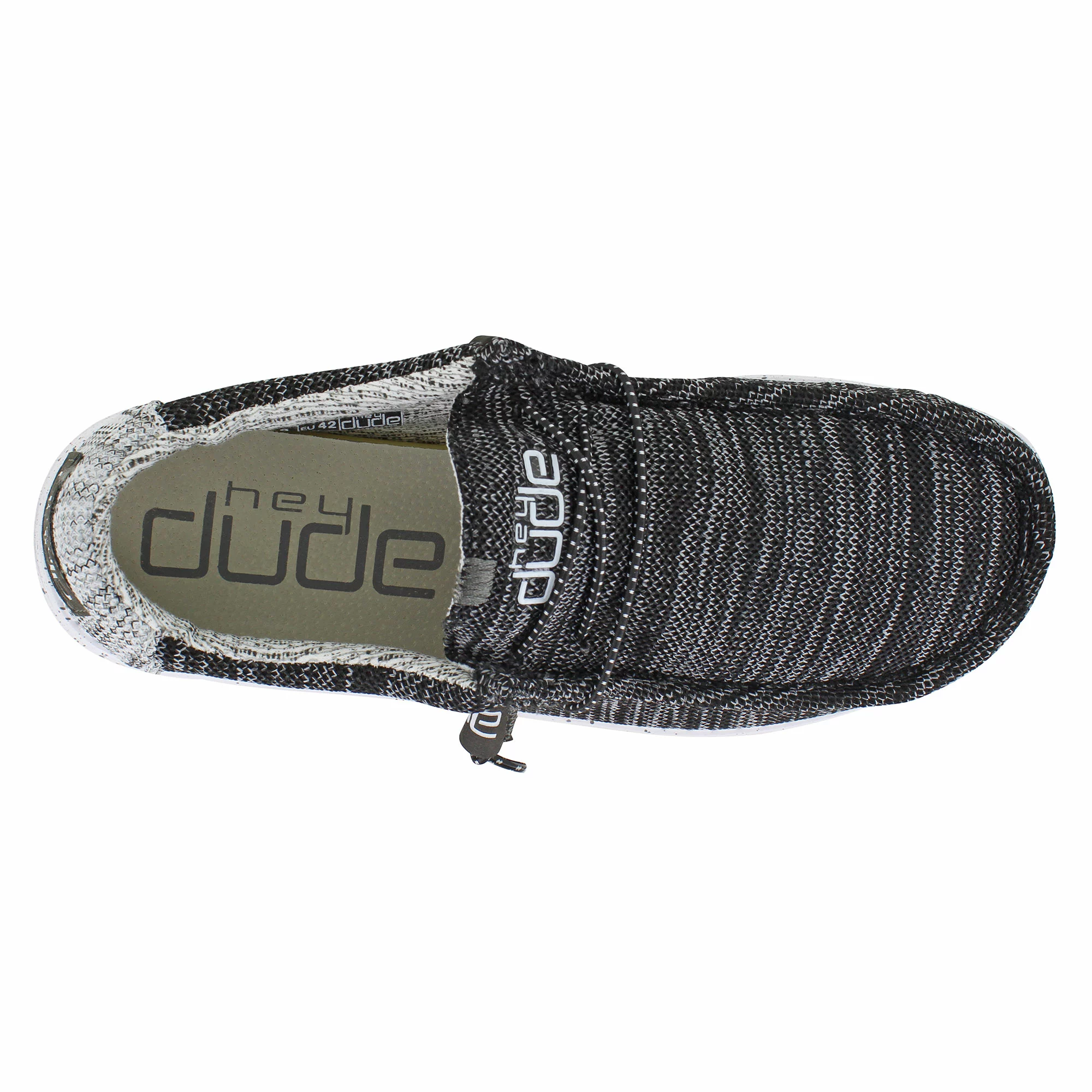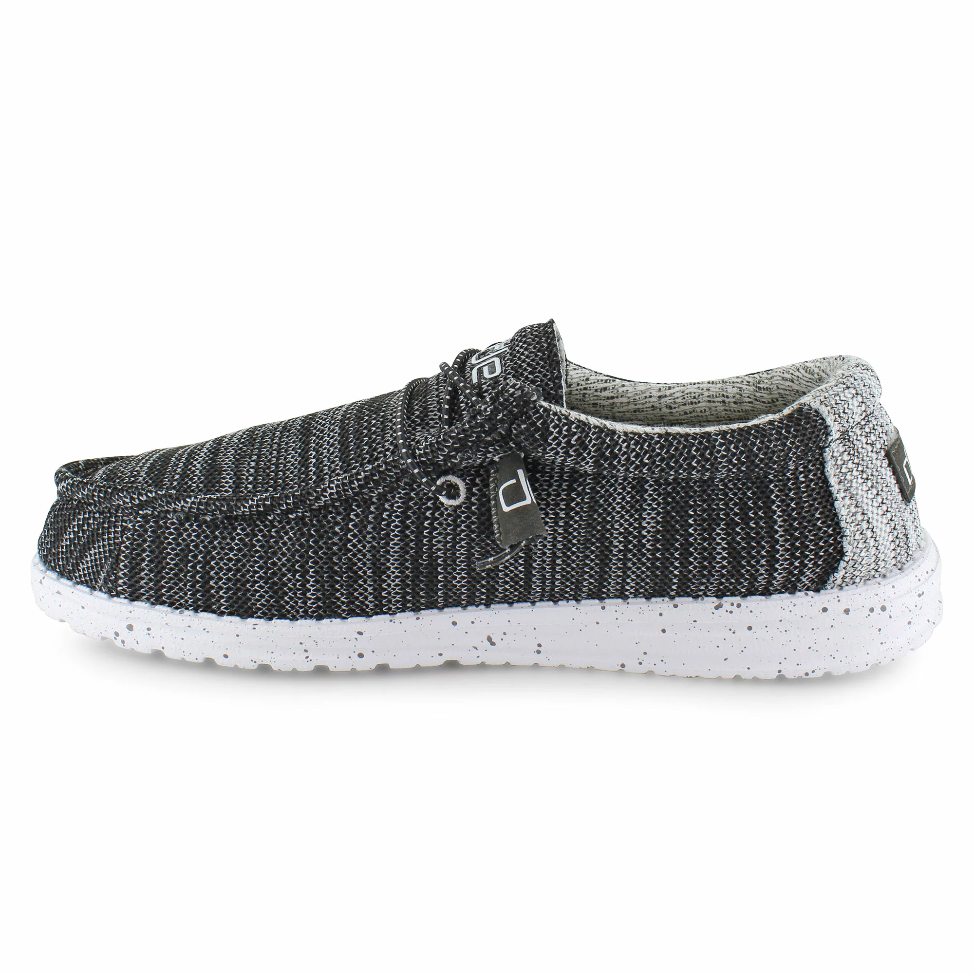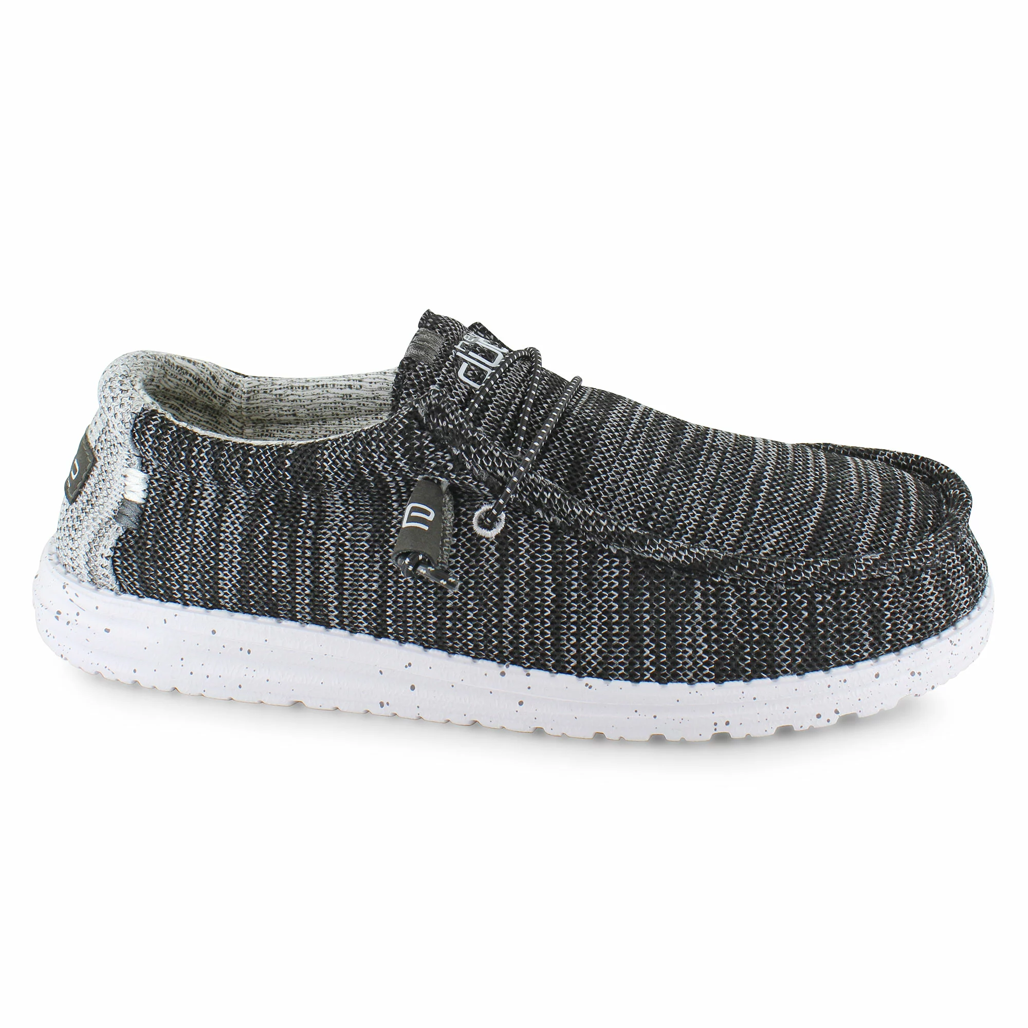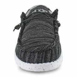 The Hey Dude Wally Stretch is lightweight and crafted for year-round wear. Built for versatile comfort and style, this moc-toe slip-on is crafted with a knitted stretch fabric upper that conforms to the shape of your foot for a snug fit. Featuring elastic bungee laces that allow for an easier on and off making this shoe the perfect on-the-go casual shoe. With a padded collar and a soft patterned cloth lining for added style as well as a memory foam insole for extra support, the Wally Stretch caters to any and all lifestyles and occasions with cool casual comfort.