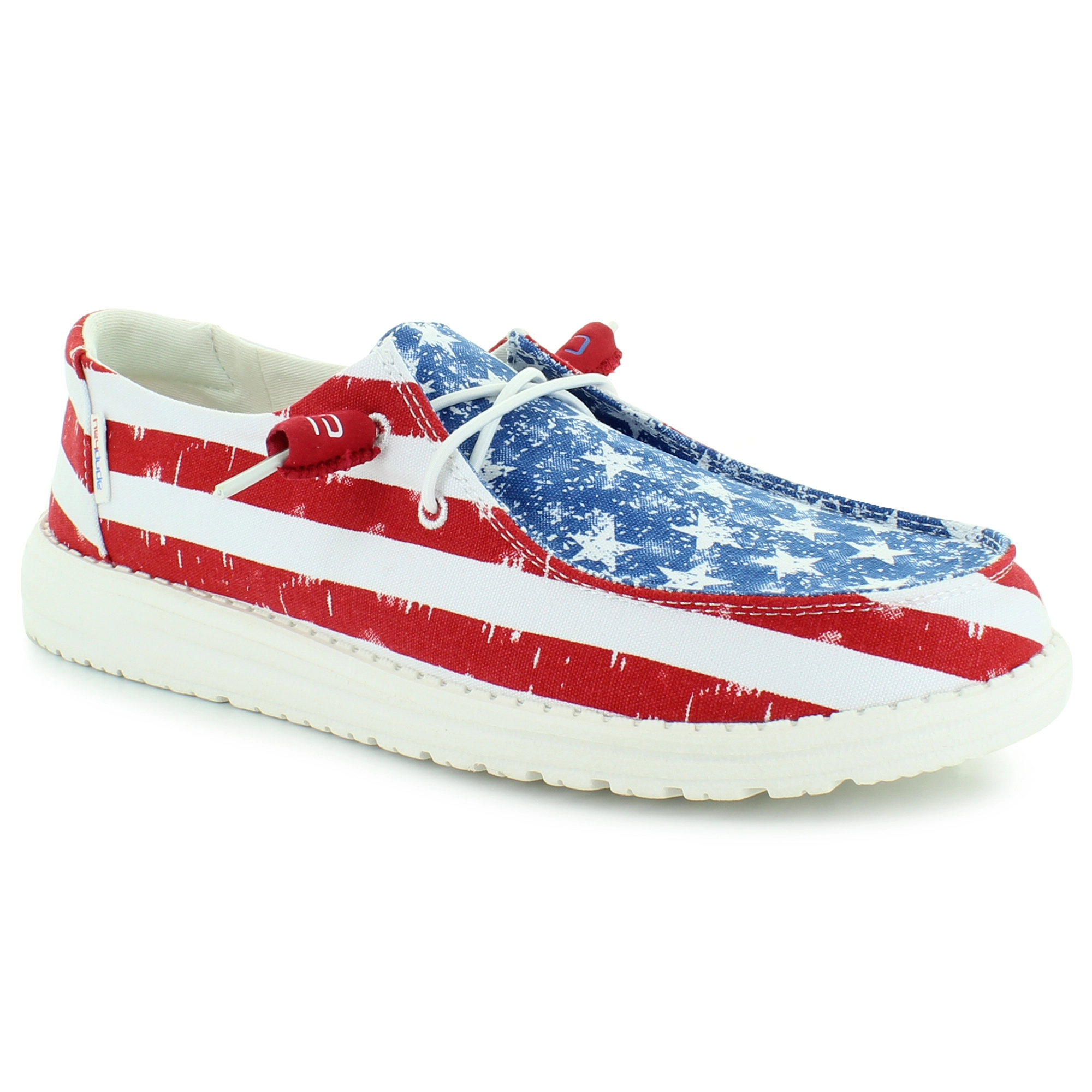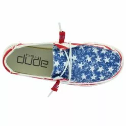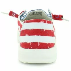 Slip into this patriotic shoe by Hey Dude. This style features an American Flag print in a slip-on style. The relaxed look and feel allows you to explore your passions and experience new places with the confidence your feet will fit in to any occasion.