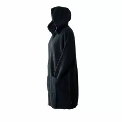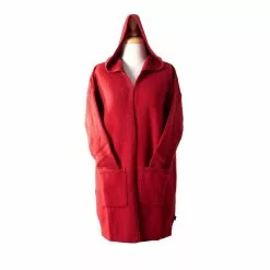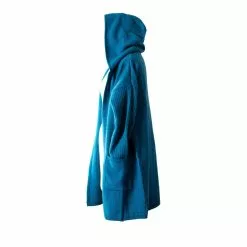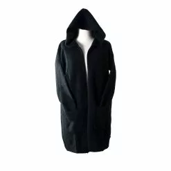This long hooded cardigan is a great winter staple. It features ribbed sleeves and pockets. We have combined the qualities and natural warmth of fine Merino Wool with the softness of Possum fur and added a little silk. Now you can enjoy the luxury of wearing this exclusive garment.