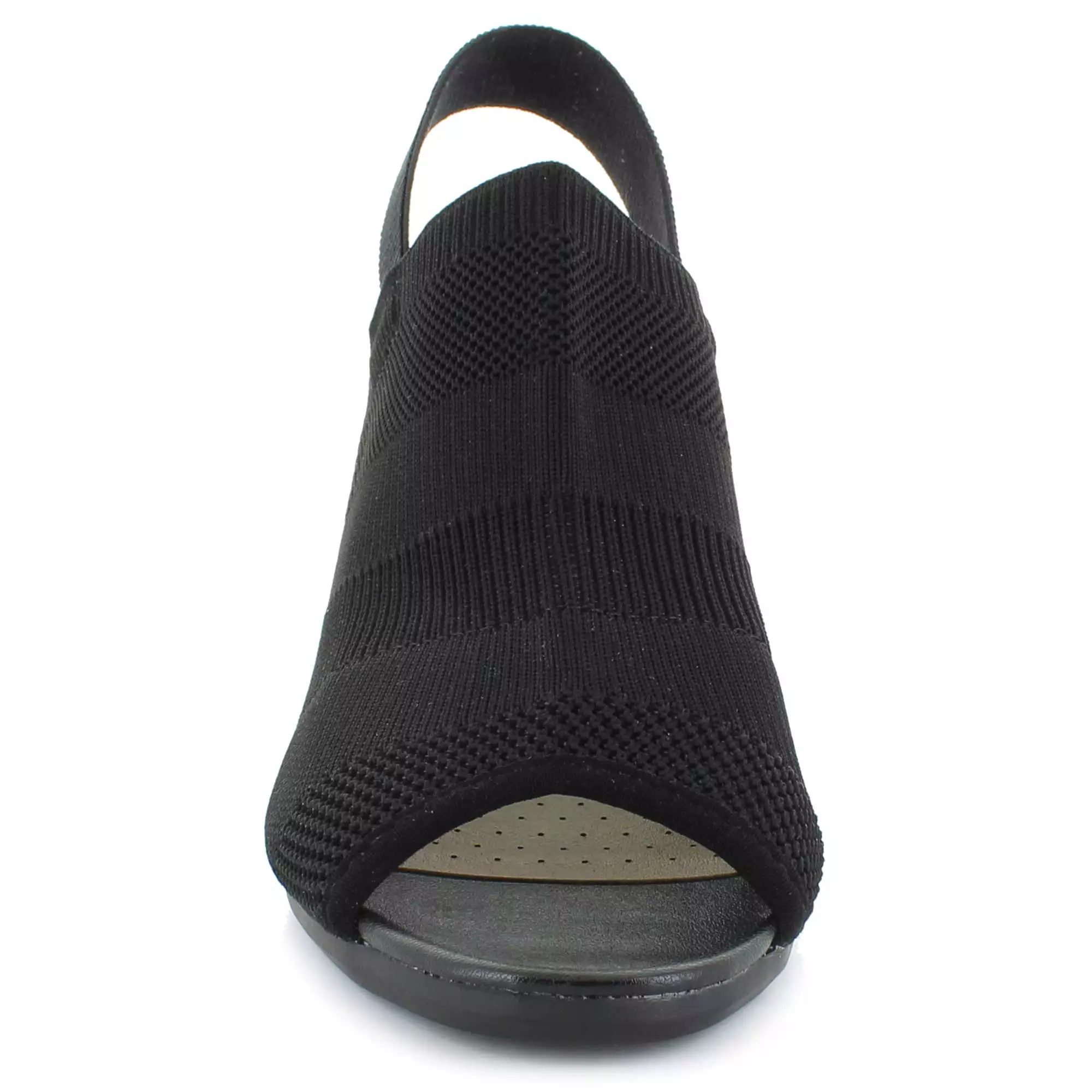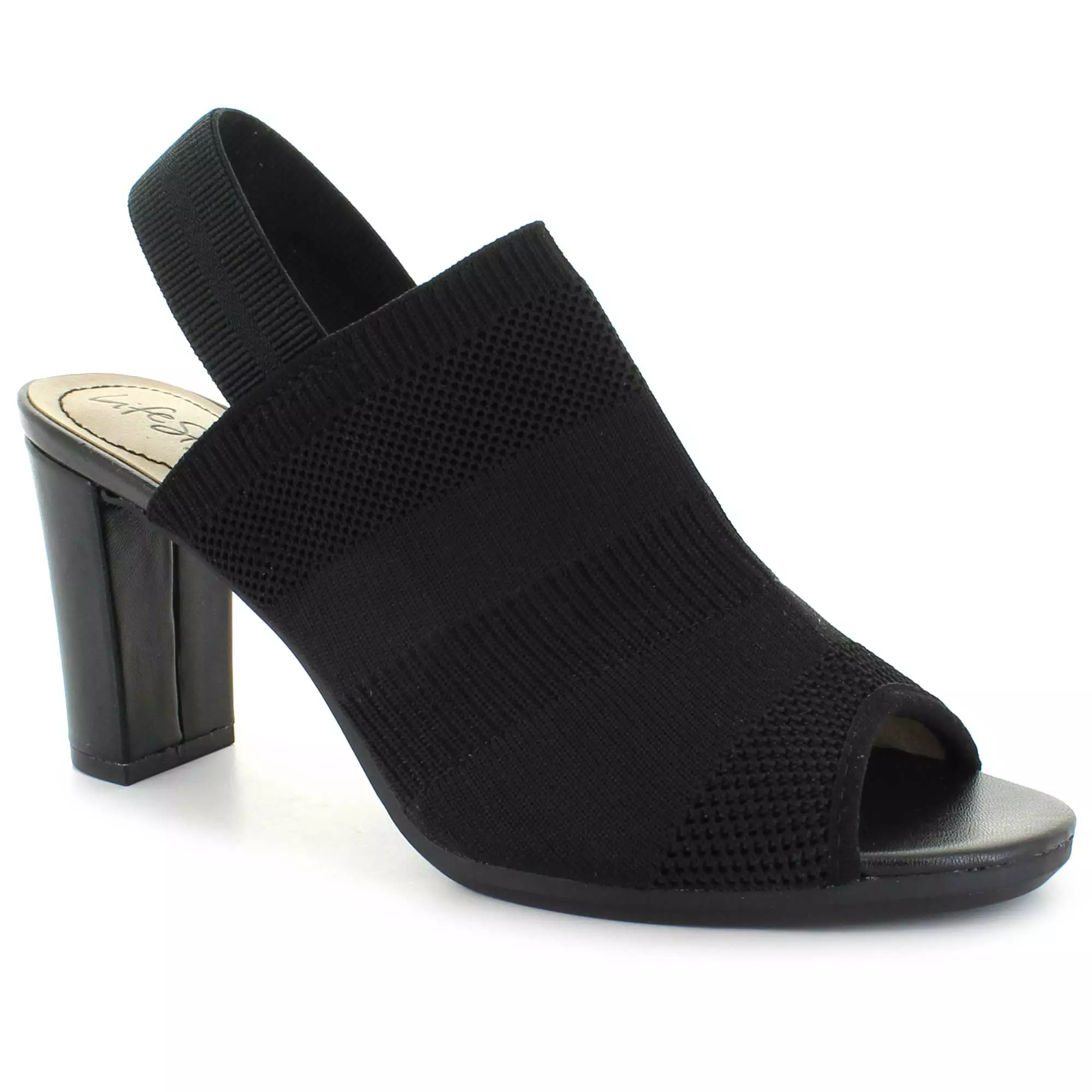 Stretchy and sophisticated, this modern peep-toe heel is the perfect fit for any look. Stretch knit upper with a peep-toe and heel slingback strap.