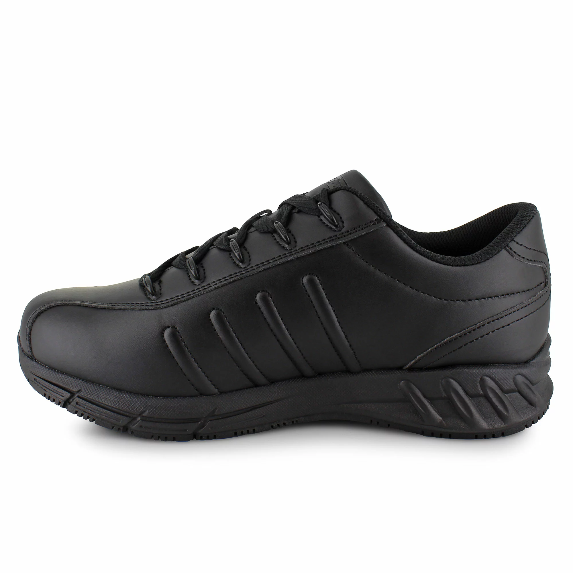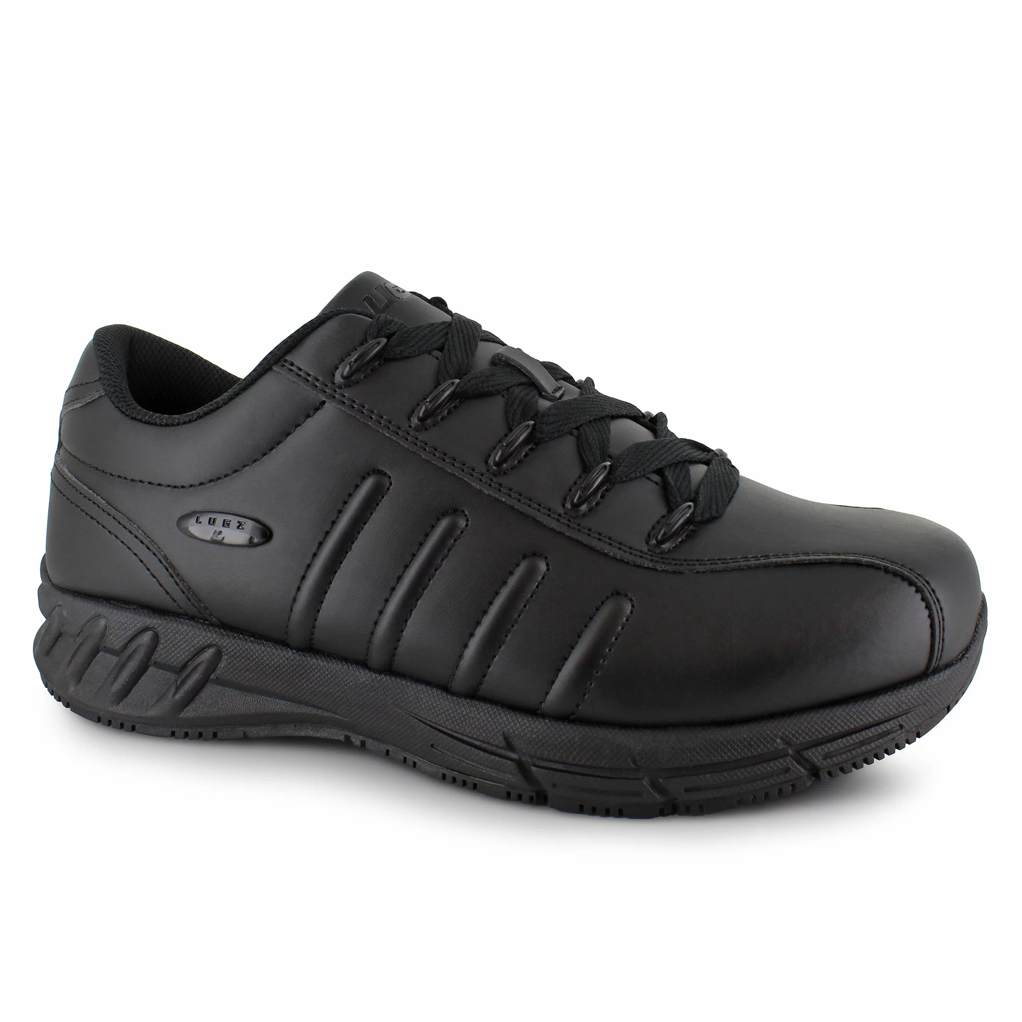 For a sneaker that works as hard as you do, try the Lugz Grapple. With a durable synthetic leather upper that creates a sporty look, this shoe is perfect for long shifts and getting the job done. The reinforced lace-up front closure provides a snug fit while metal eyelets add a little flair to the design. A cushioned insole combined with a lightweight EVA midsole provides long-lasting comfort and an energetic feel while a durable rubber outsole keeps you steady on your feet with slip-resistant traction.