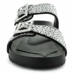 Feel like a star in the Madden NYC Electric. This sandal features a slip-on wear with dual buckles for a comfy fit. The rhinestone details will sparkle with each step.