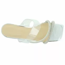 Get the lift you need in this essential dress slide by Nicole Miller. The Nicole Miller Townie Slide features a clear upper in a slip-on style. The rhinestone straps will provide sparkle with every step.