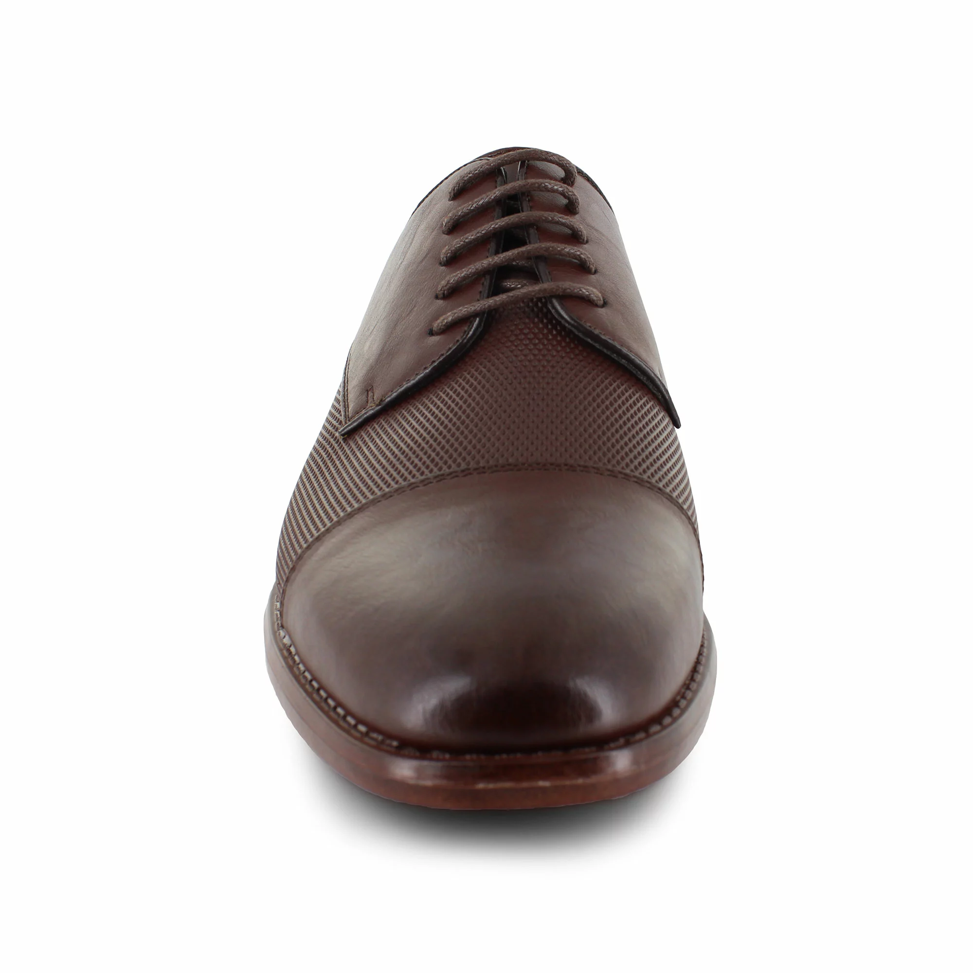 Lace-up for any occasion with the classy Oliver Mason Ash. This handsome dress shoe features a durable synthetic leather upper creating a stylish cap-toe oxford that pairs well with khakis and other dress attire. The lace-up front closure provides a snug fit while a cushioned insole ensures lasting comfort throughout the day. Textured detailing on the vamp along with a raised heel adds flair to the design. A durable synthetic outsole provides traction.