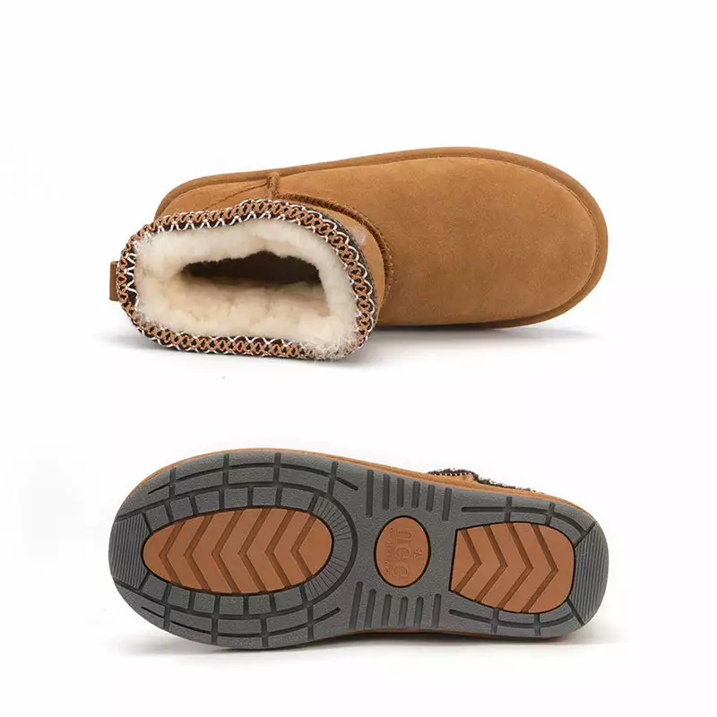 UGG Ultra Short Taso Boots for all occasions, our best-selling boots with embroidered braid , durable outsole as our Classic Boot so that you can wear it indoors and out. Lined with plush sheepskin and upcycled wool, it’s crafted from soft suede with an embroidered braid and an easy slip-on silhouette.