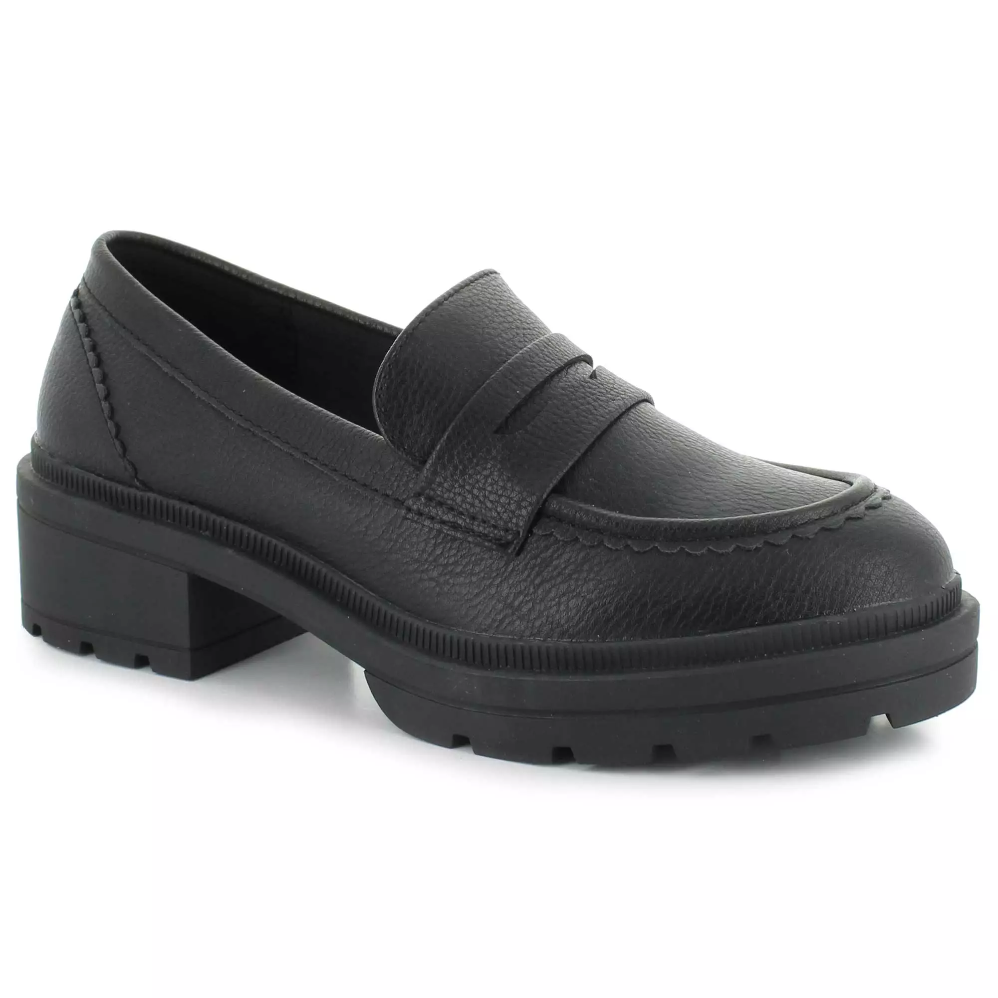 Slip into this sleek loafer by Rocket Dog. This style features a faux-leather upper with a plush comfort insole for all day wear. The chunky block heel will provide the perfect height.