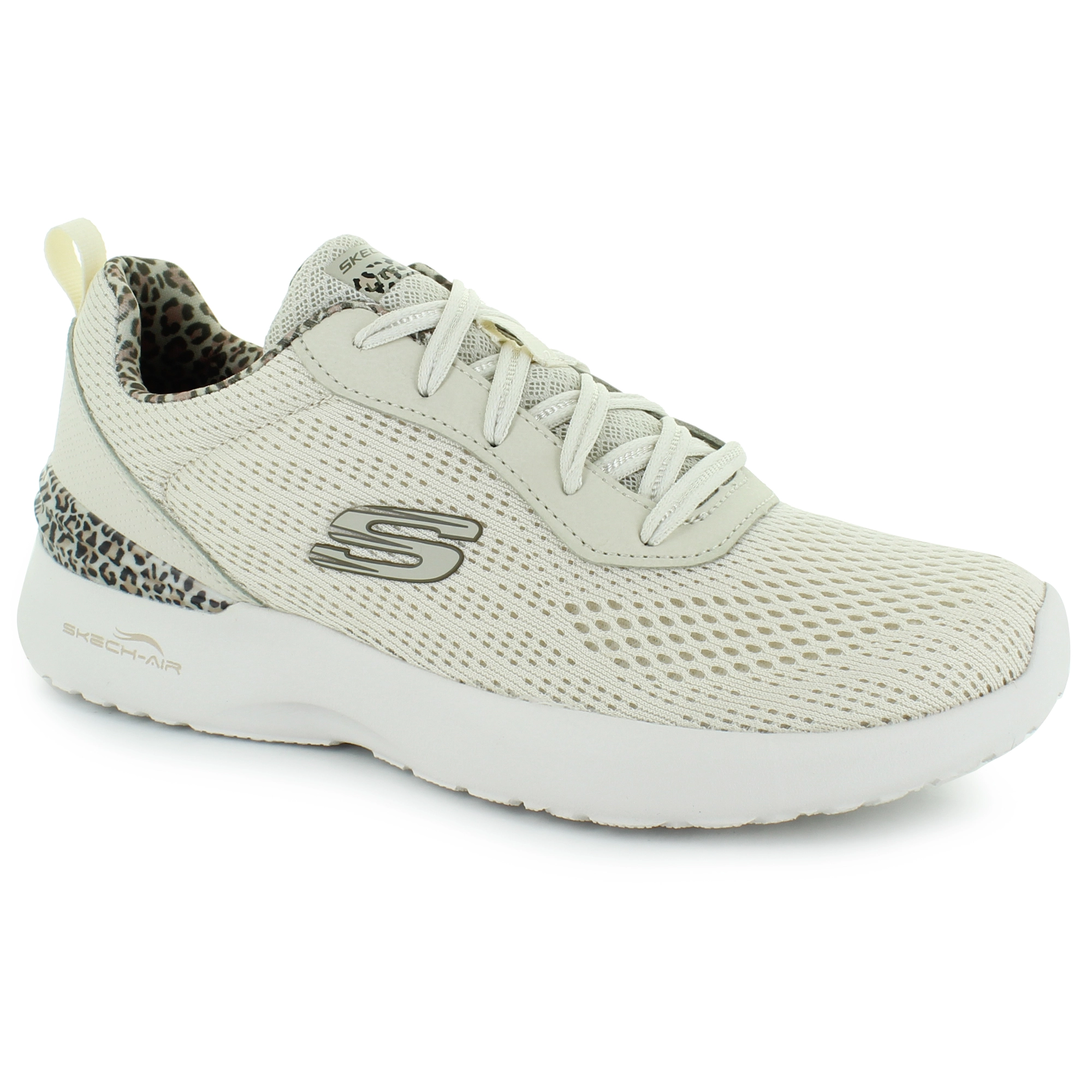 Glam up your style in athletic comfort with Skechers Skech-Air Dynamight – Wild Lead. This lace-up features a mesh and synthetic upper with leopard print trim, a Skech-Air shock-absorbing midsole and a cushioned Skechers Memory Foam insole.