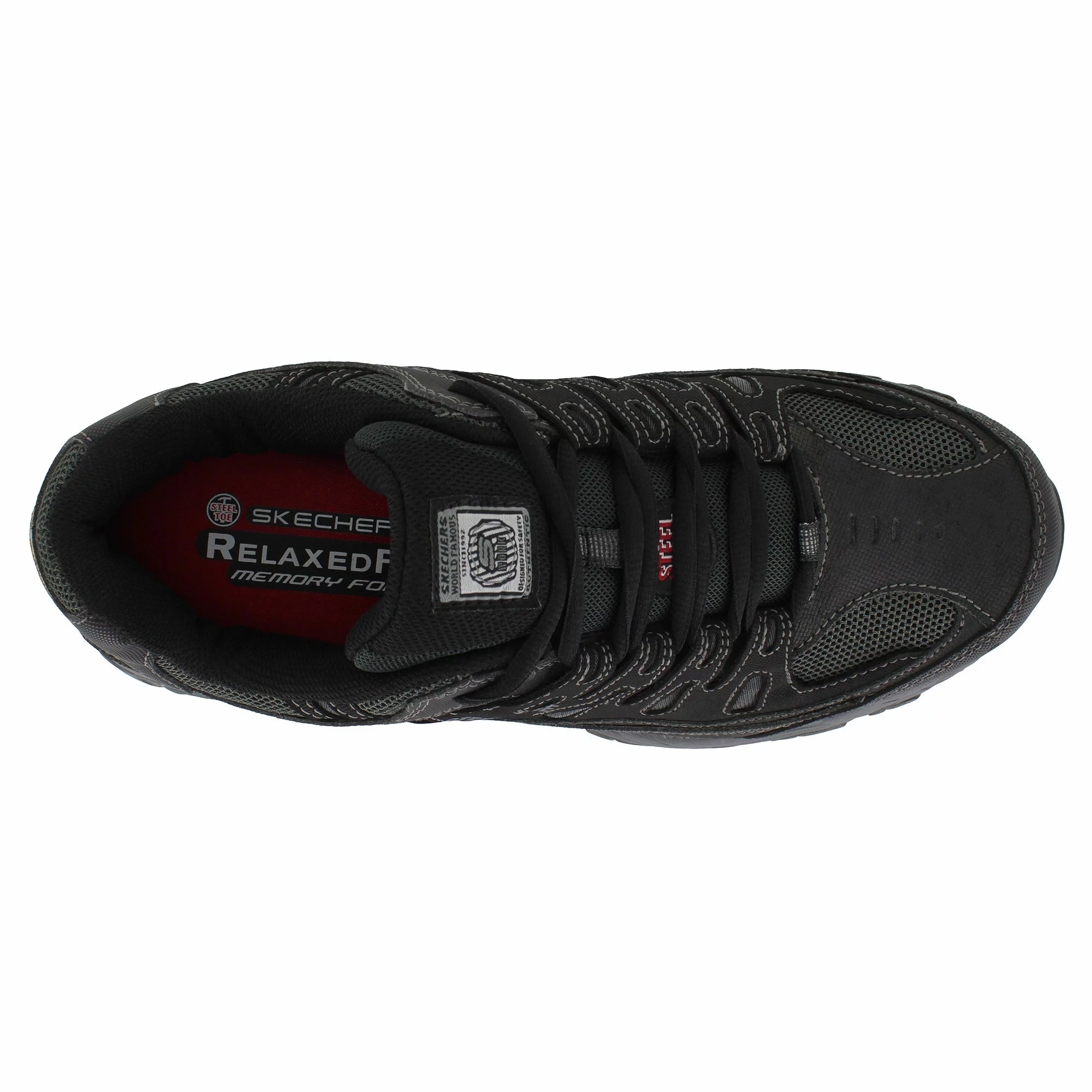 The Skechers Work: Cankton is the perfect blend of lightweight comfort and hard work capabilities into a athletic sneaker that’s built to endure. Featuring a steel safety toe and an electrical hazard safety rating that ensures protection in the toughest work environments and crafted with a durable high-abrasion leather upper that’s made to last. The reinforced lace-up front closure works with a padded tongue and collar to provide a snug and secure fit while action nubuck overlays offer an added layer of protection throughout. A Relaxed Fit Memory Foam footbed keeps your feet comfortable throughout the day with lasting support, while a lugged high-traction rubber outsole provides stability on a variety of surfaces and work conditions.