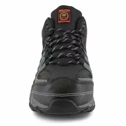 The Skechers Holdredge – Rebem is comfortable all in one stylish yet durable hiking boot design. Crafted from synthetic leather with overlays that offer additional support and durability when combined with a steel safety toe. The Relaxed Fit design and mesh panels provide a roomy yet breathable feel that keeps your feet feeling refreshed. A Gel-Infused Memory Foam insole cushions your foot to the max for all-day comfort while a shock-absorbing midsole and slip-resistant rubber outsole ensure superior support and traction.