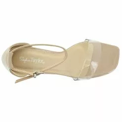 Elegant dress shoe by Sophia Taylor. This style features a clear upper with a side buckle closure for an easy on and off. The block heel will provide the height you need.