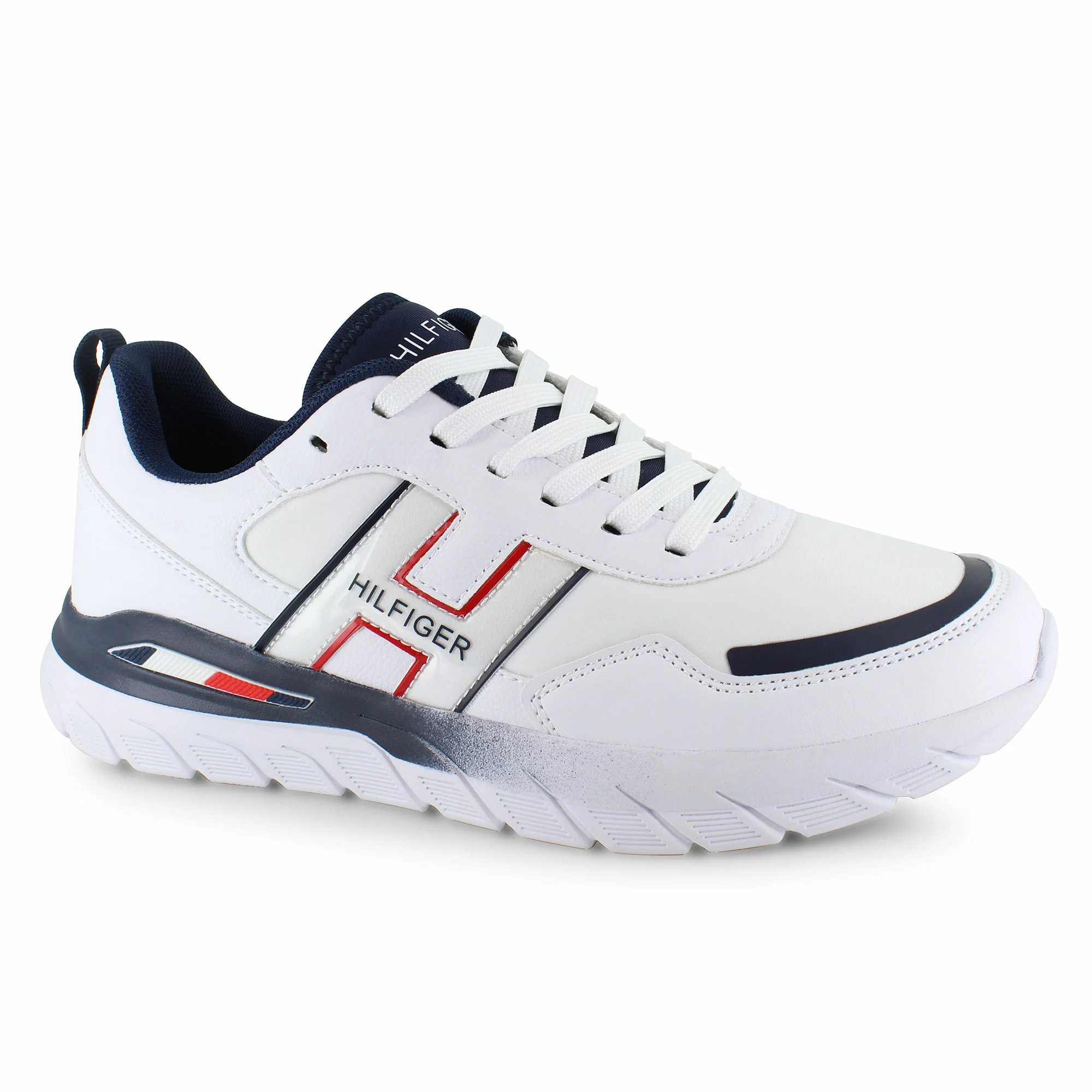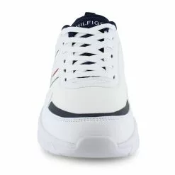 The Tommy Hilfiger Nanuet is sleek and sporty and ready for action. This sneaker is built for athleisure with a durable synthetic leather and fabric upper that keeps your feet feeling refreshed. The padded tongue and collar combined with a lace-up front closure to secure your foot snug in place. Pairing well with jeans, khakis, and athletic attire, this sporty sneaker features handsome Tommy Hilfiger branding for added flair to a sleek design. The cushioned insole works with the lightweight synthetic outsole to keep you light on your feet and going all day in comfort.