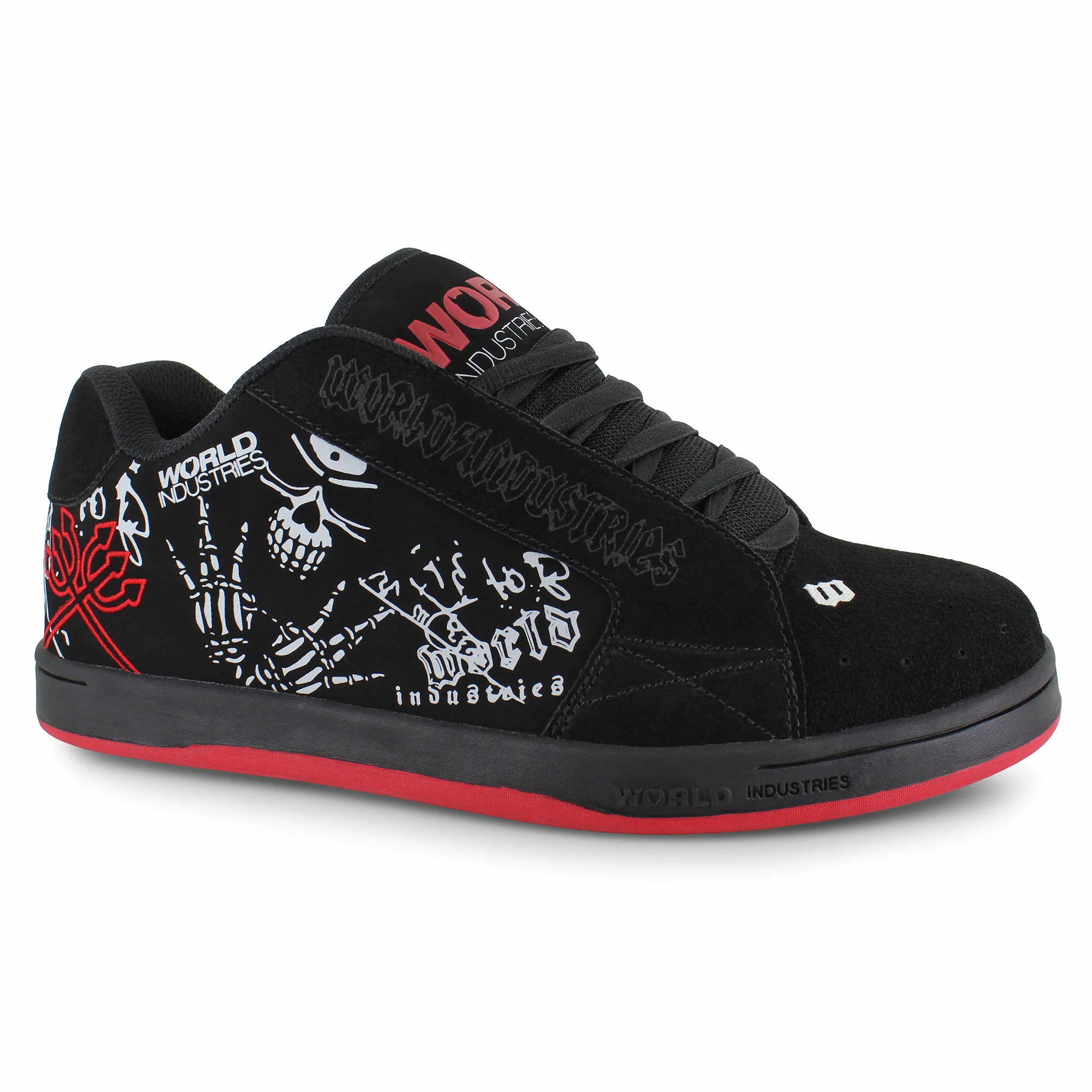 Get ready to dominate the skatepark in the World Industries Smith Bones. Crafted with a durable synthetic leather upper with upper perforations that enhance breathability to keep your feet feeling fresh. Pairing well with jeans and athletic attire, this sneaker features World Industries branding and boney designs for added style. The lace-up front closure combined with a thick padded tongue and collar keep your feet locked in place and ready for the halfpipe. A cushioned insole provides all-day comfort for everyday wear as well as skateboarding performance while the durable rubber outsole ensures superior traction on and off the board.